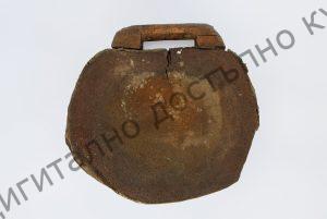 Дъска за кълцане на месо от крушово дърво, кръгла форма, закована отстрани метална дръжка.