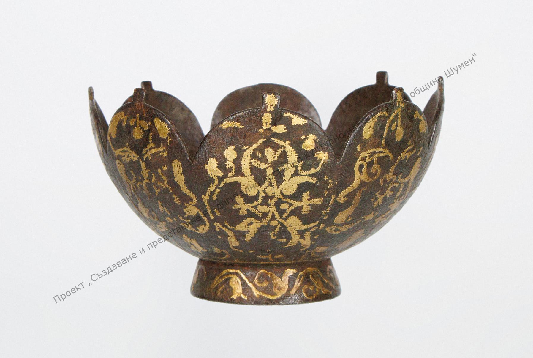 Отвън е със златна инкрустация.