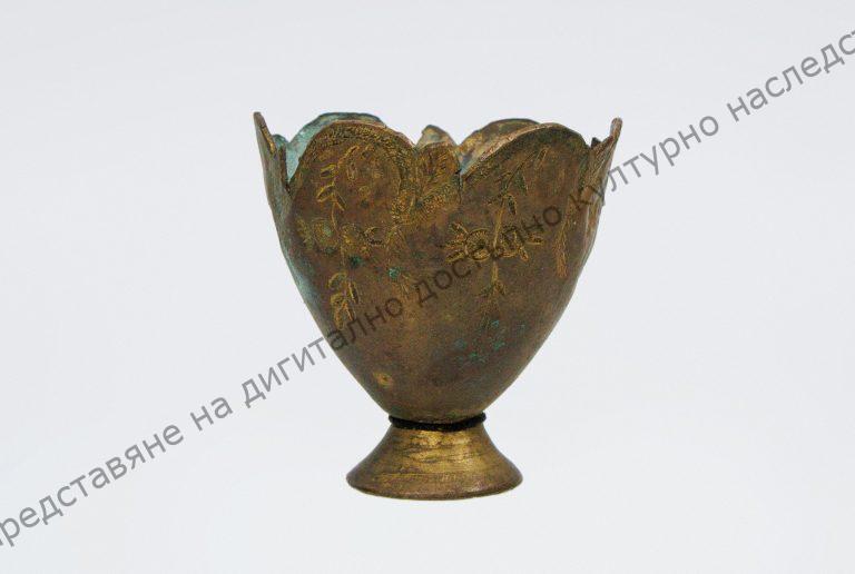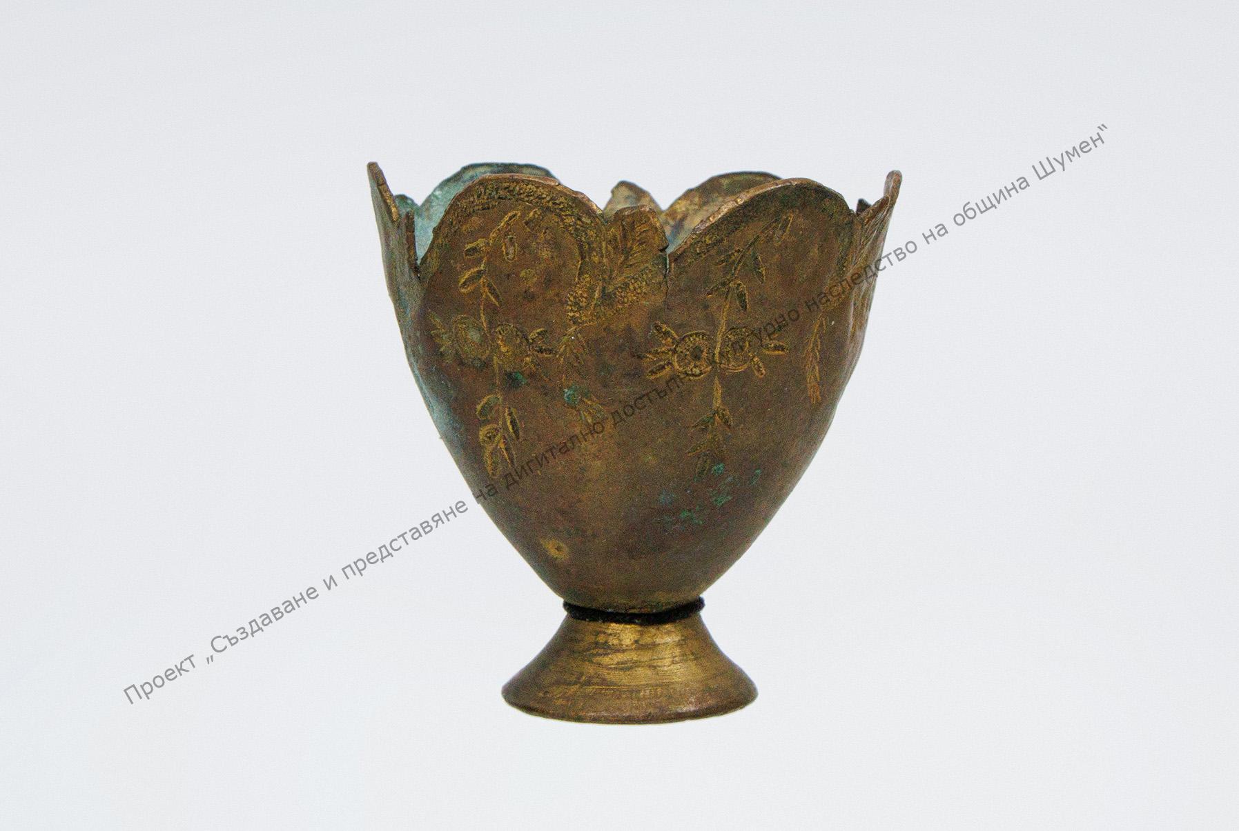 Позлатена, кована украса. Столчето е с гладка, кръгла поставка.