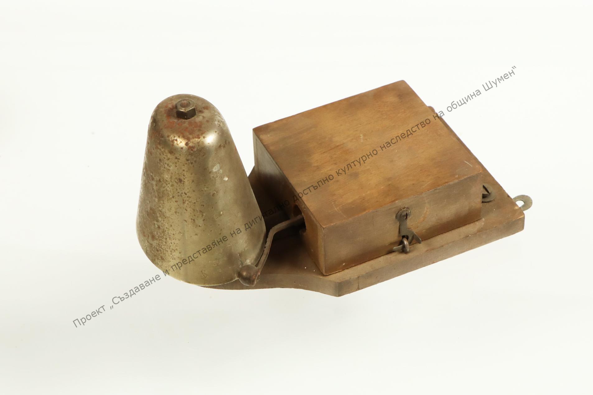 Metal mechanism placed in wooden box. From the home of Georgi Manolov – merchant from Shumen, 20s-30s of the 20th century