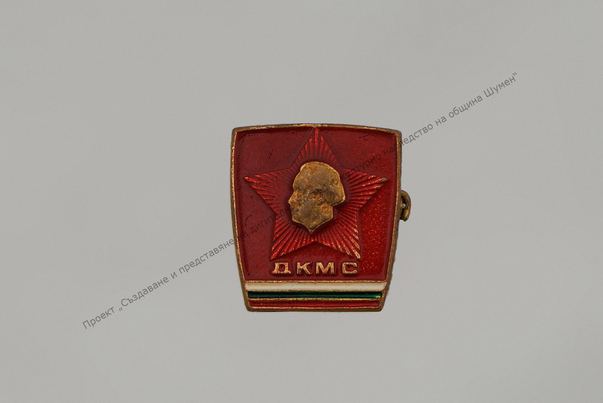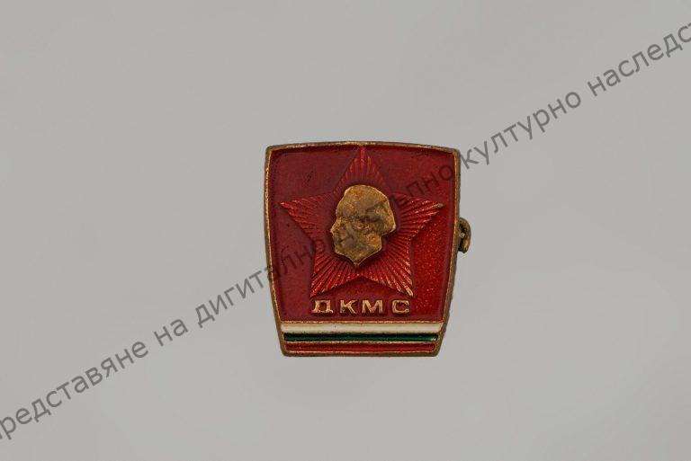 The official badge of the Dimitrov Communist Youth Union, at the centre – the image of Georgi Dimitrov