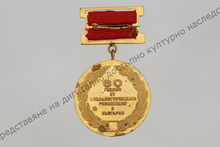 „30 years of the socialist revolution in Bulgaria“, with the images of Dimitar Blagoev and Georgi Dimitrov