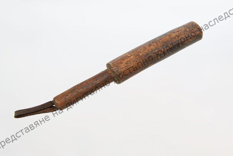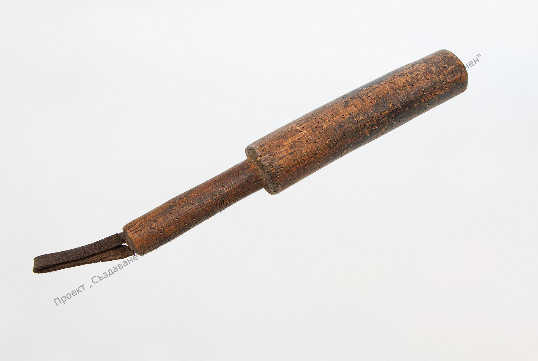 Part of saddler’s toolset. Used for clubbing the leather parts when making the loop, so that they soften and fit better
