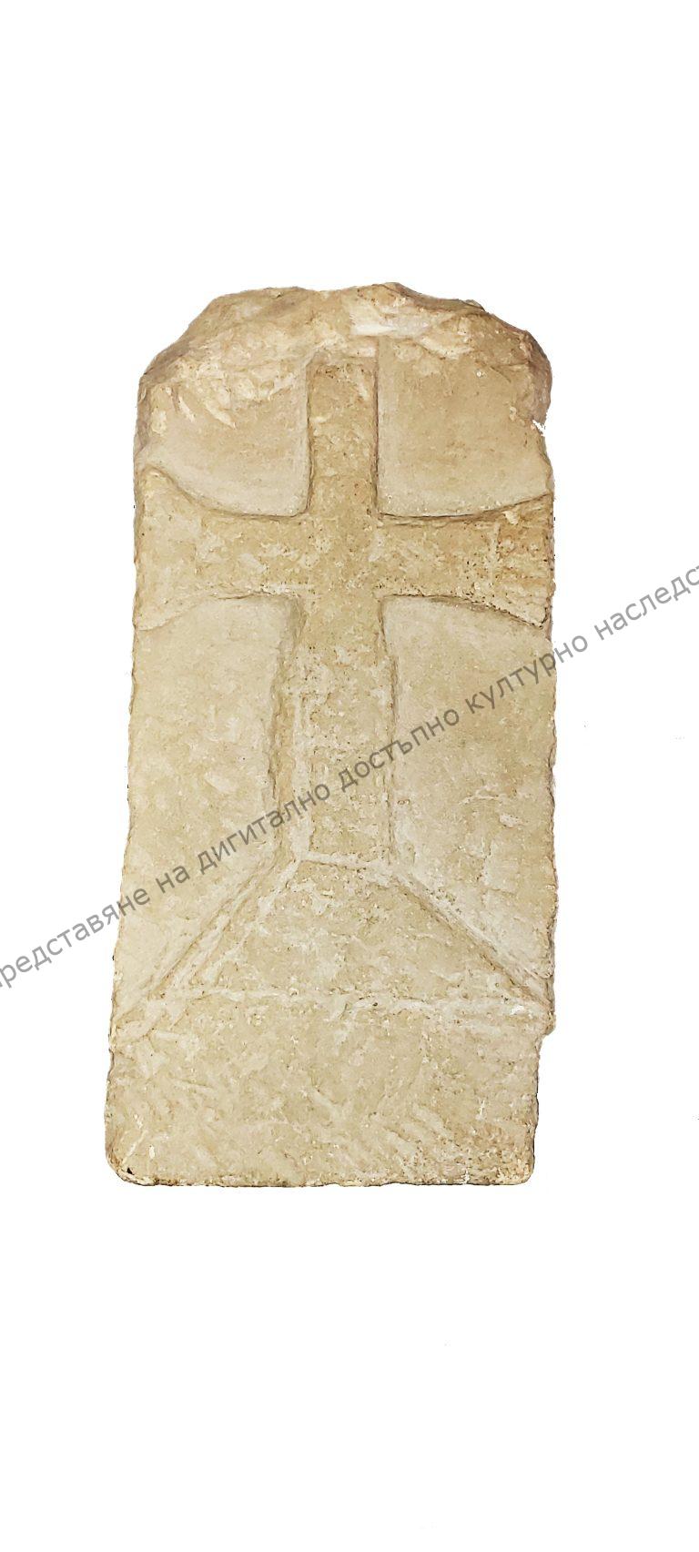 Надгробен, изработен от варовиков блок. Върху лицевата му страна е изсечен монументален релефен кръст. Върхът на вертикалното рамо е счупен, там е бил разположен надпис, от който до наши дни е достигнал само най-долният ред с името на погребания монах „Гаврил”, Х в.