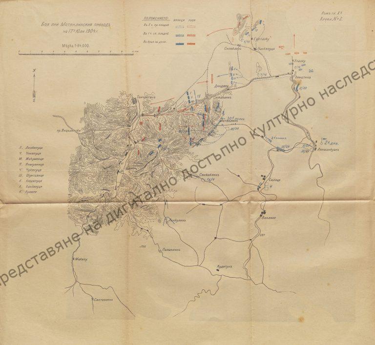 Карта БОЯ при МОТЯНЛИНСКИЯ ПРОХОД на 17 юли 1904 г.