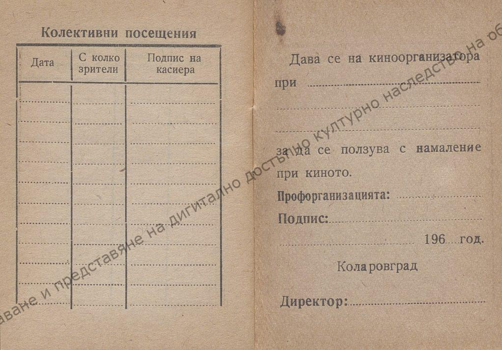 Issued by “Kinefikatsia” Printing House Kolarovgrad, 1962