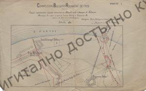 Croquis representant le point terminus au Danube relie a lenceinte de Silistrie. Remarque: Le croquis est copie de l’annexe # 1 de la Commision Europeenne de delimitation de la Bulgarie. Deleques Pour la Bulgarie: (Signe) Major Veltcheff. Pour la Roumanie (,,) R. Roseffi