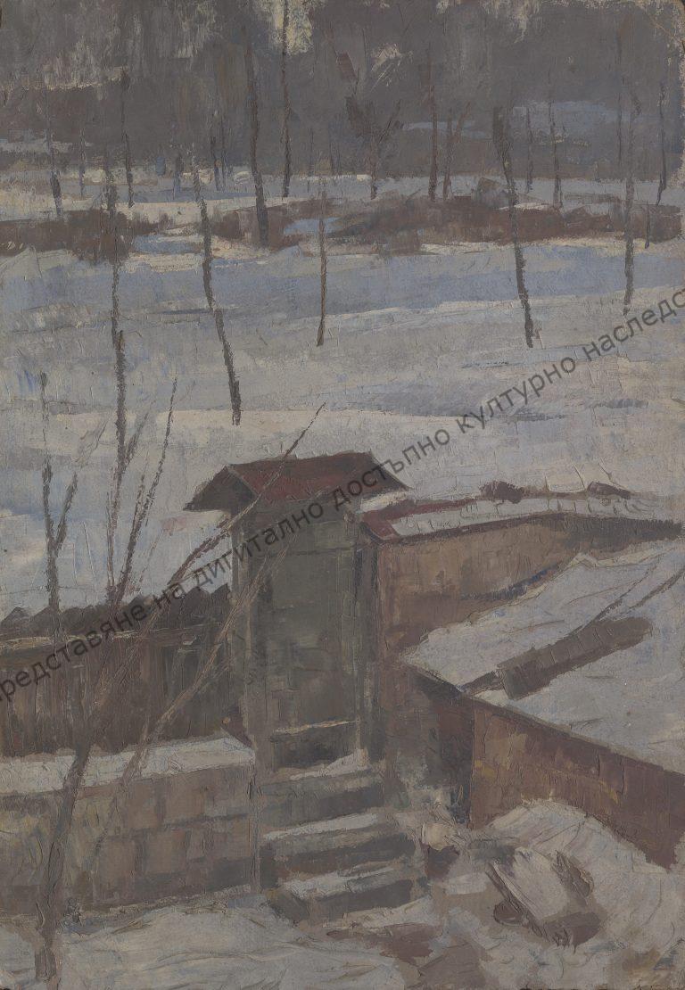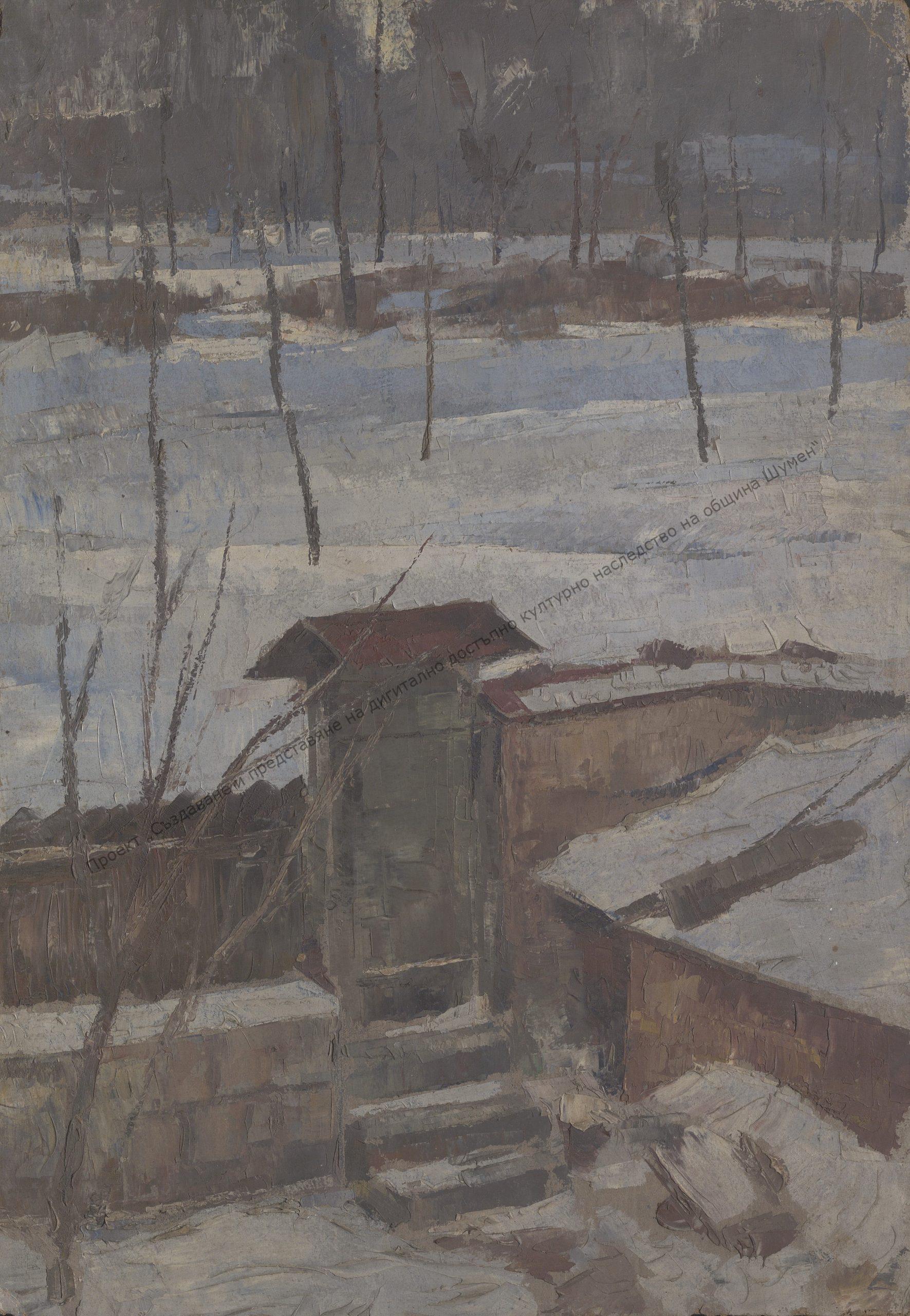 Картина „Кът от шуменски двор“. Масло. Художник Владимир Вичев