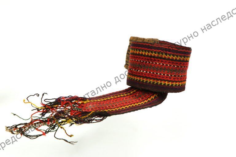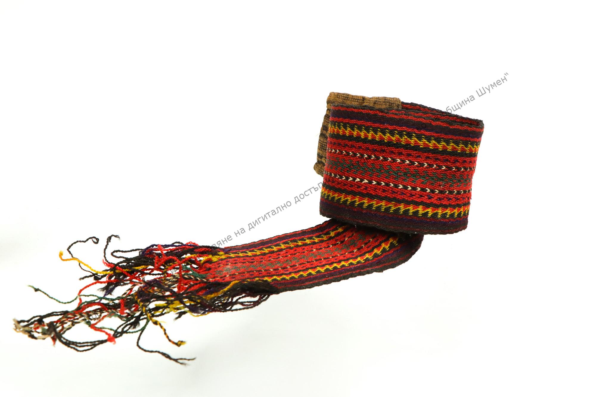 Тъкан на кори от разноцветни вълнени конци с геометрични фигури по дължина. От края на XIX век, носен в Дивдядово