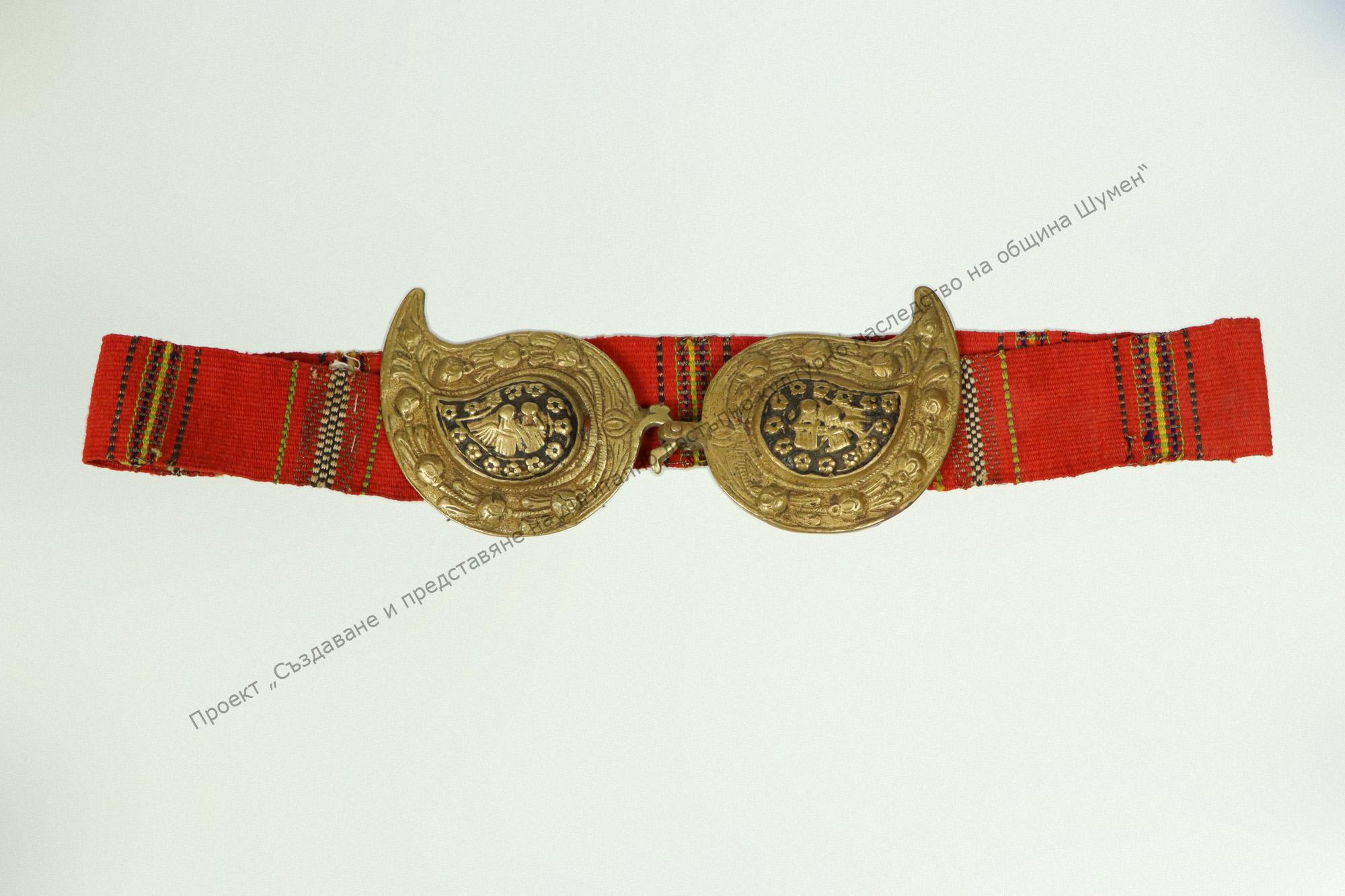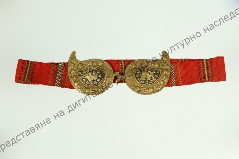 Тъкан, на разноцветни ивици, завършва с пафта. Използвал се е на сукман