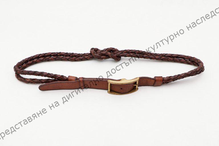 Дамски. От кожа, изработен от плетени „косички“. Изработен от Милко Минчев – майстор на художествените занаяти