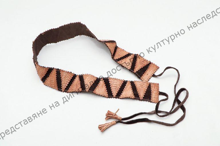 Дамски. От пилешка кожа и велур. Завършва с връзки