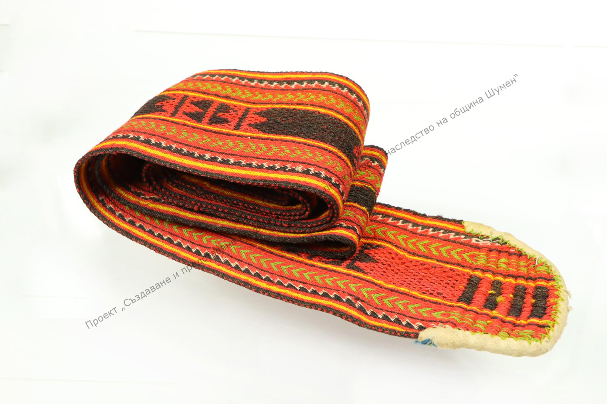 Women’s. Woven, of wool in scarlet, black, green, yellow and white