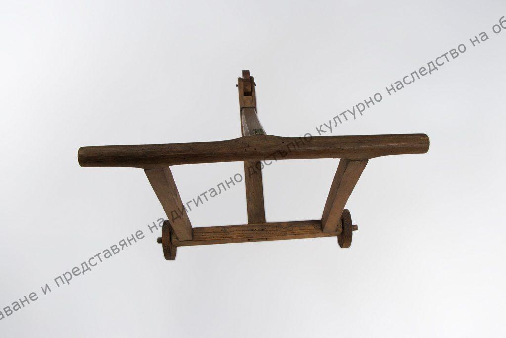 Представлява правоъгълна дървена рамка с издадени краища на двете основи – на долните са прикрепени колелца, а горните служат за дръжки. Към средата на долната основа е прикрепена перпендикулярно друга дъска, в края също с дървено колелце. Наклонен лост свързва последната със средата на горната основа на рамката.