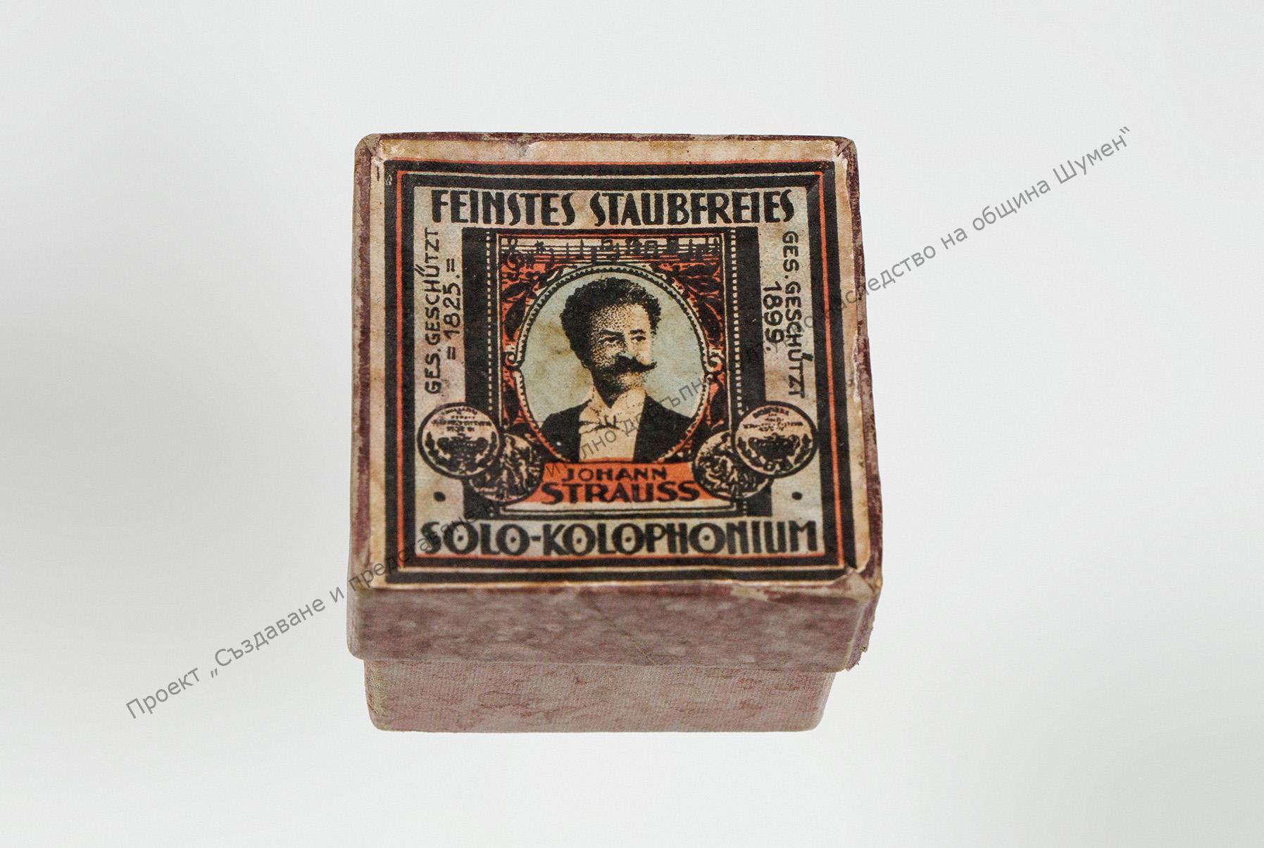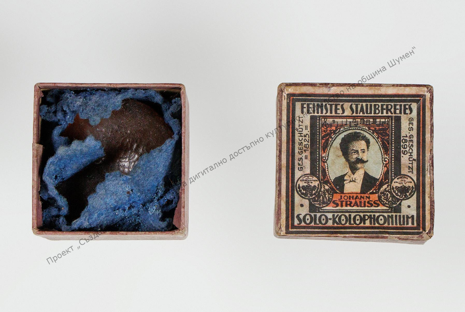 Box of rosin. Belonged to Dimitar Tyulev – musician and choir conductor from Shumen. “Musical Work” Collection