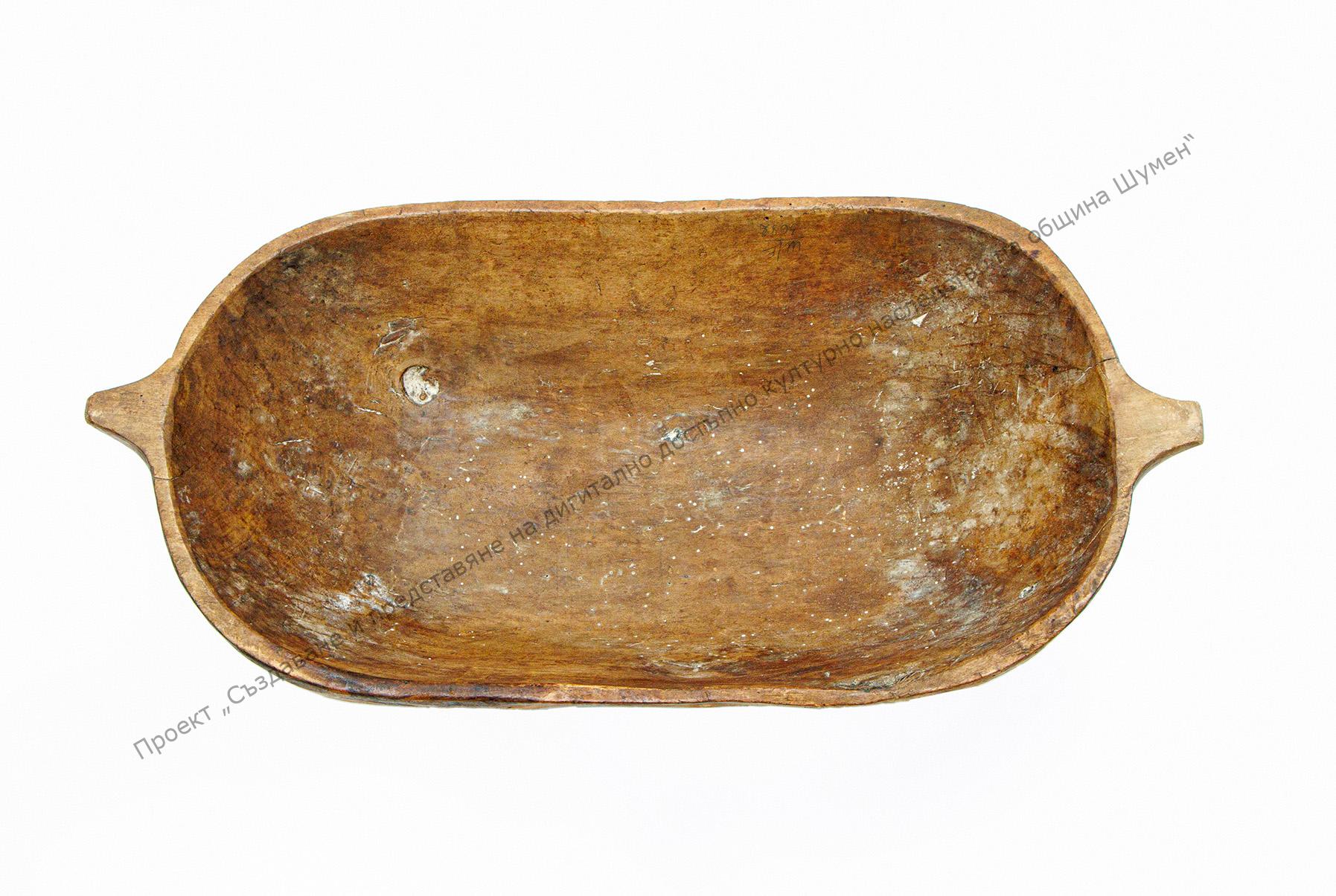 Коритесто, с удължение в двете страни за дръжки. Употребявана вместо леген. Младите булки миели краката на свекъра и главата на свекървата