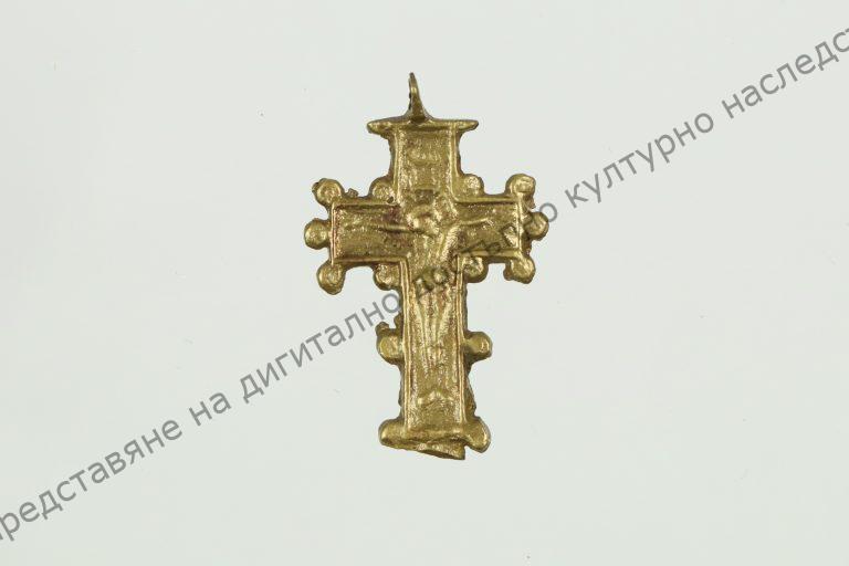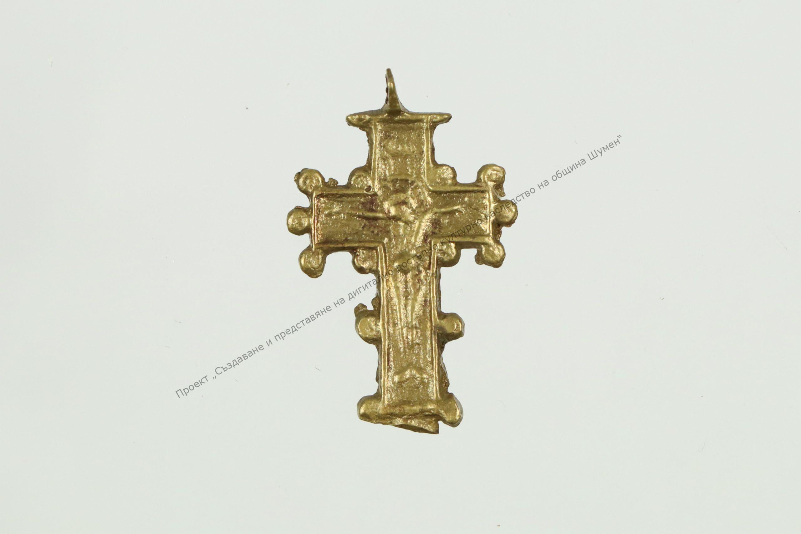 От жълт бронз. С изображение на „Разпятието“, гранулирана украса
