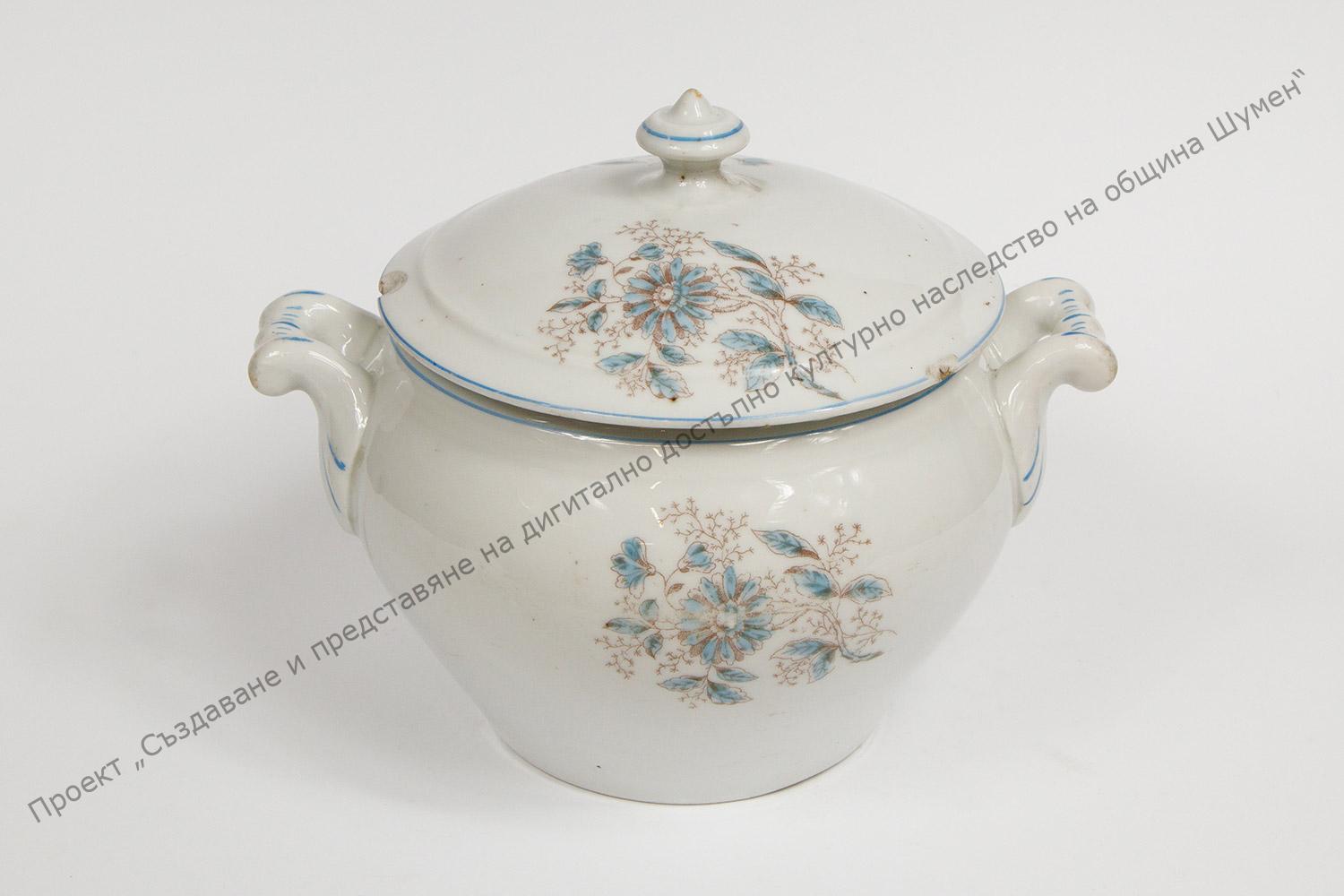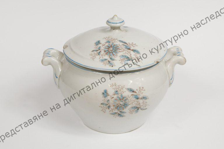 Диаметър дъно 11,5 см, отвор 15 см, височина 13 см. Капак – диаметър 16,5 см, височина 6,5 см