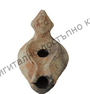 Лампа с крушовидна форма. Намерена през 1903 г. при разкопки в Голямата пещера при с. Мадара от Р. Попов.