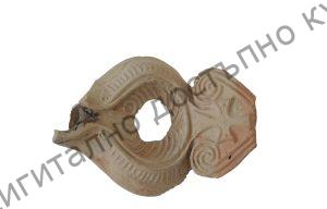 Лампа от глина с цвят охра. Дискът е отделен от плещите с два успоредни релефни ивици. Украсата върху плещите и диска и се състои от вертикални и диагонални релефни ивици. Плоската сърцевидна дръжка е украсена с кръст с разширени краища. Намерена е при с. Войвода в м. Хисаря по време на разкопки от Цв. Дремсизова и В. Антонова през 1964 г.