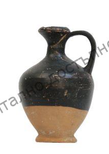 Лекит от глина. Устието е фуниевидно със заоблен навътре устиен ръб. Дъното е оформено в ниско пръстеновидно столче. Горната част на тялото е покрита с черен фирнис. Открит в Шуменско.
