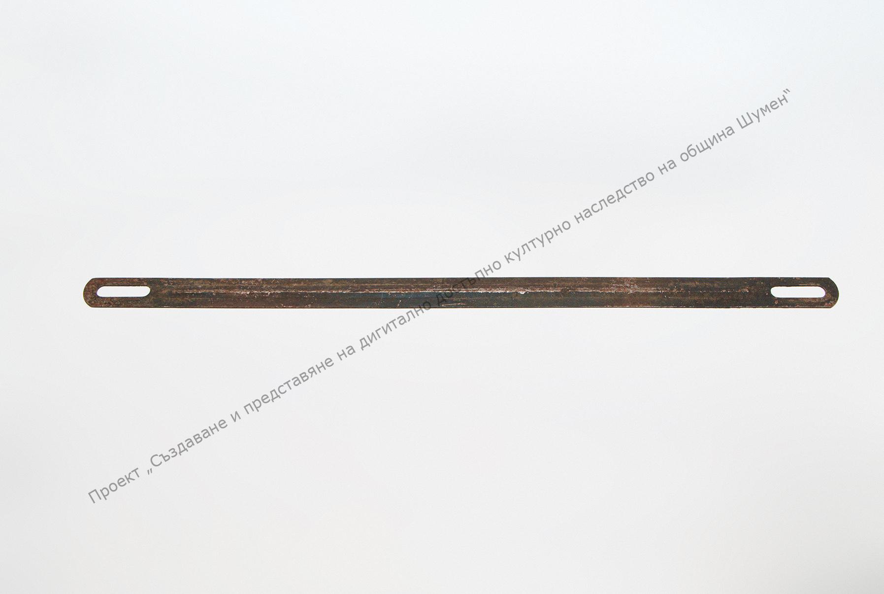 Part of saddler’s toolkit. Of rectangular steel sheet. Used for drawing the straps before cutting