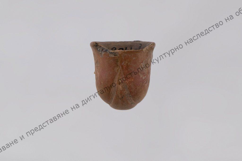 Чашката за тютюн разширена в горния край. От двете страни по едно цвете с дълбана украса