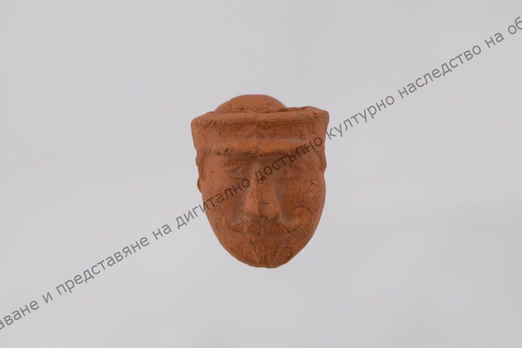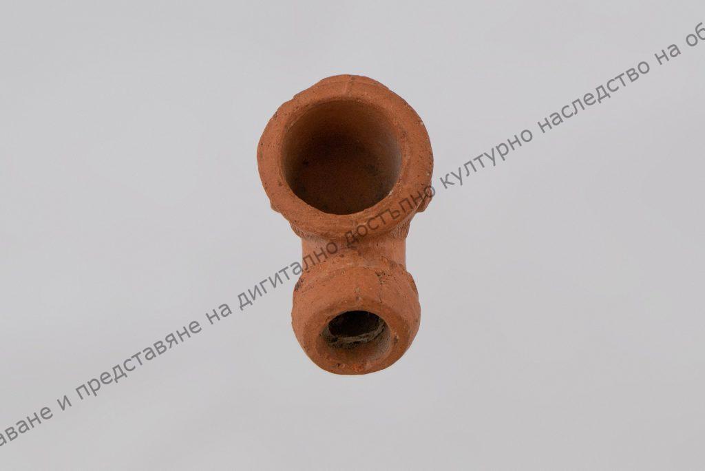 Глинена, негледжосана. Чашката за тютюн представлява мъжка глава, личи шапка. Смукателната тръбичка с едно вдлъбнато пръстенче и друго от дребни зрънца