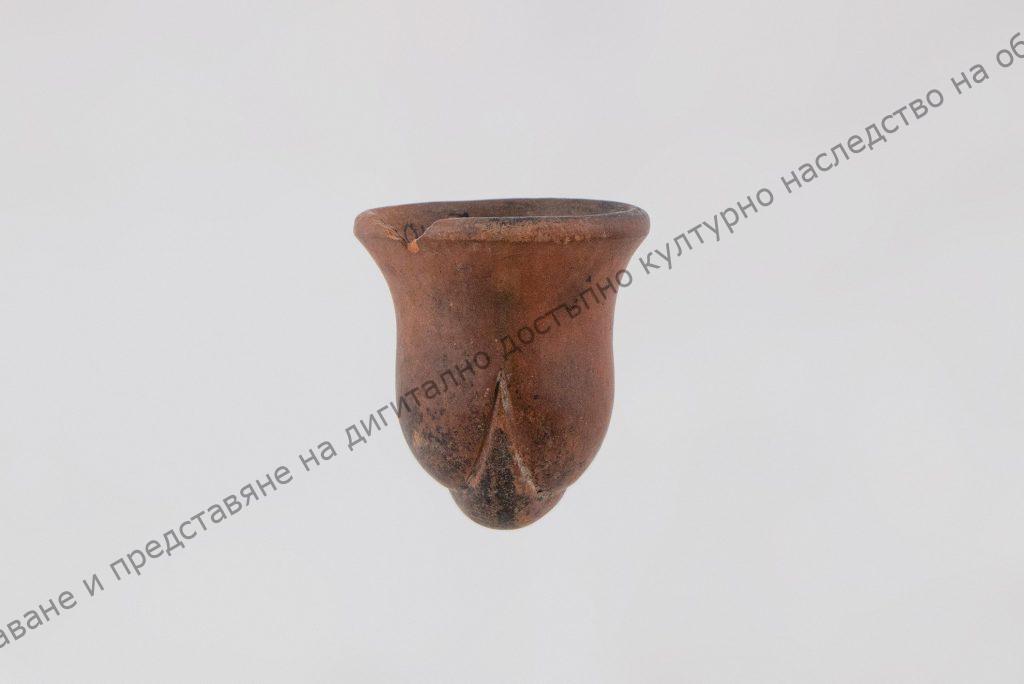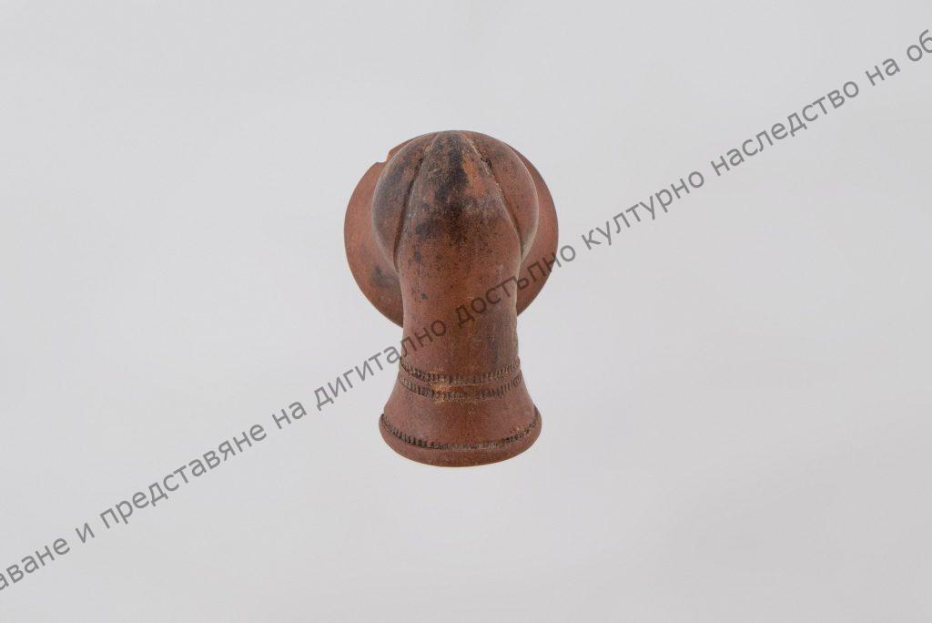 Чашката за тютюн с форма на ваза, горе разширена и извита навън. Тръбичката къса, с 2 концентрични кръга от малки чертички, от едната страна печат на производителя с арабски букви