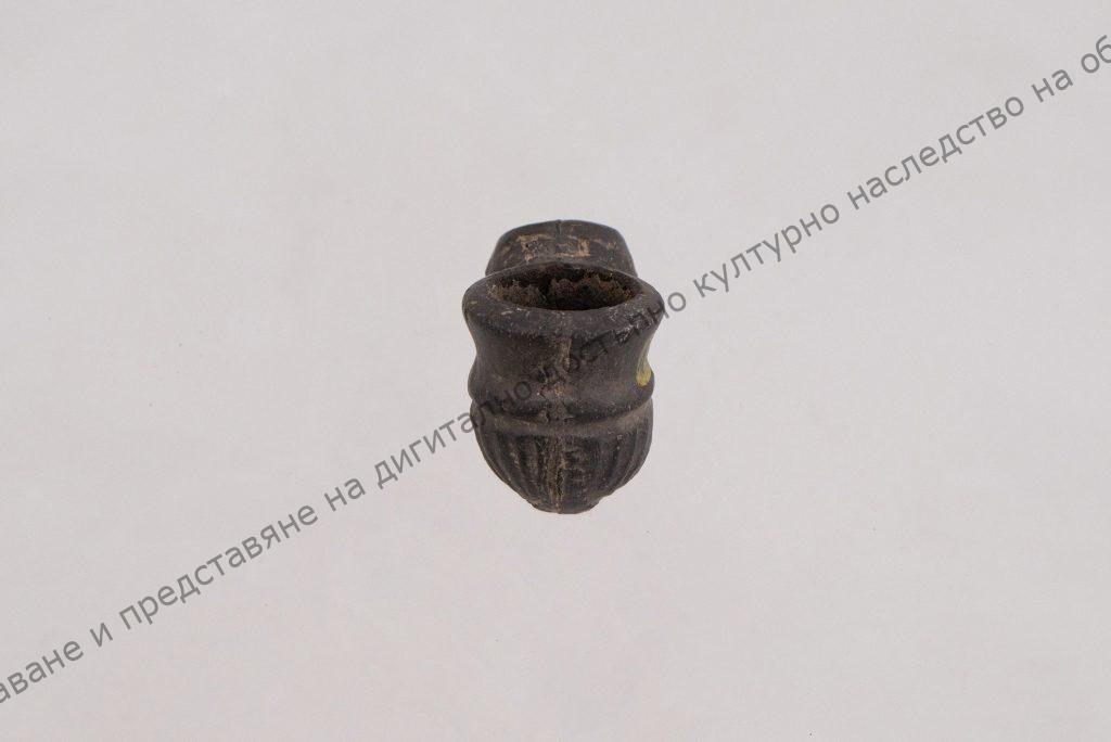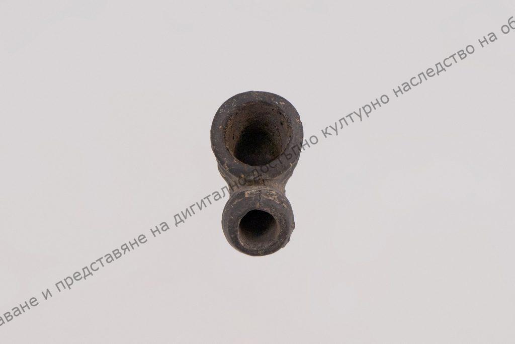 Черна глина. От едната страна поставен номер „N 4“. Украса точки и черти