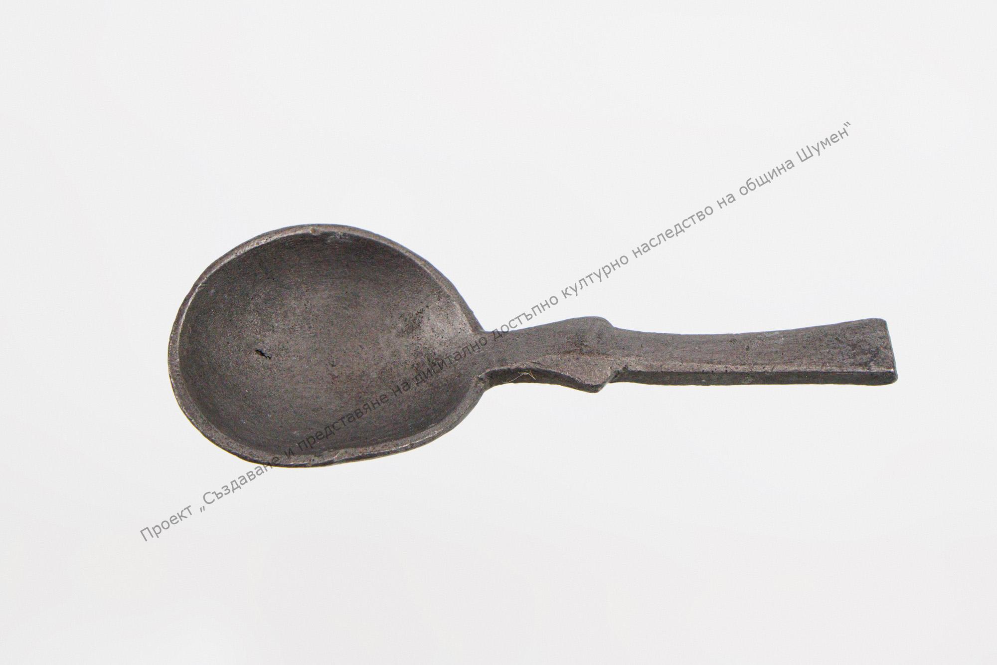 Part of goldsmith’s inventory – belonged to Panayot Kuyudzhi – goldsmith from Shumen. Of lead, hemispherical, broken handle. Probably used to add the necessary substances when making the alloys or when casting silver spoons as a model