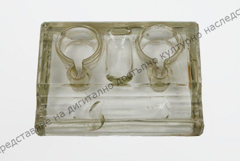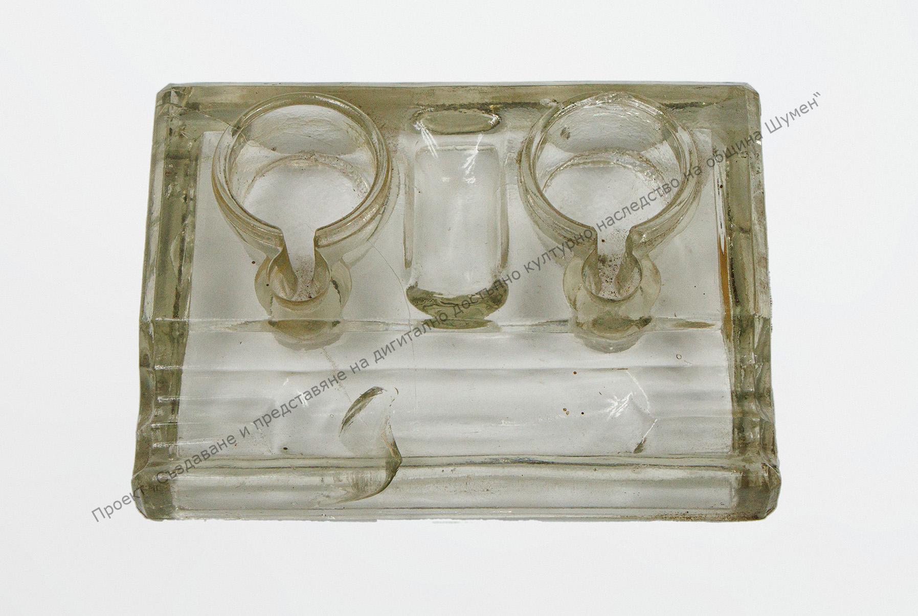 С две прегради за мастило и място за поставяне на перодръжка или молив. Гладко стъкло.