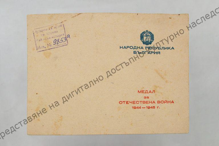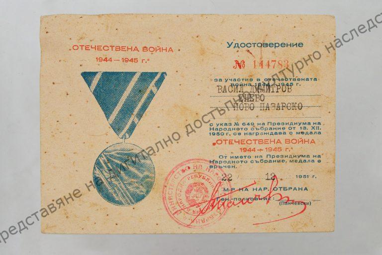 “The War against the Third Reich 1944 – 1945”, presented to Vasil Dimitrov – the village of Enevo, Novi pazar region
