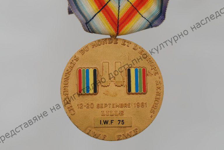 From the European Weightlifting Championship, 75 kg – Lille, 12 – 20 of September 1981. Awarded to Yanko Rusev