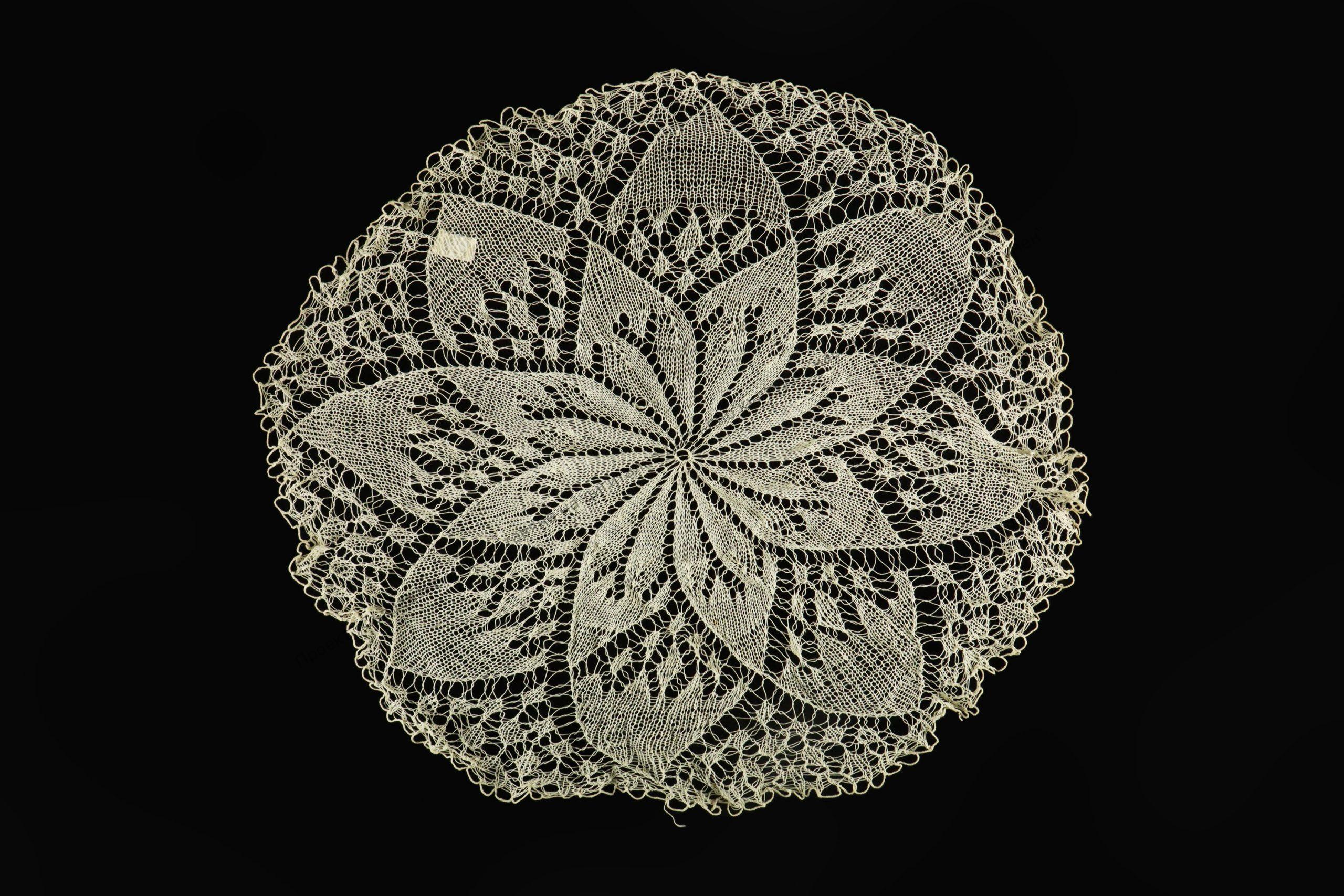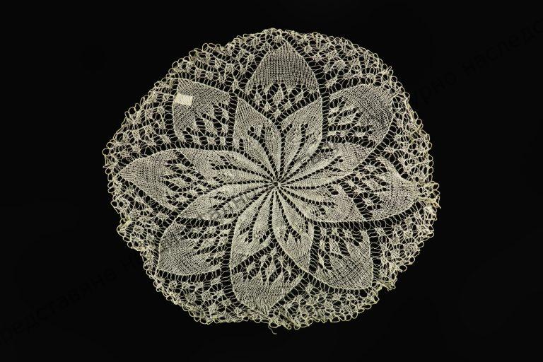 Изплетено ръчно на 5 куки от домашно точени и пресукана коприна. Работено от Карамфила Яйцарова в гр. Любимец, Хасковски окръг, за чеиз