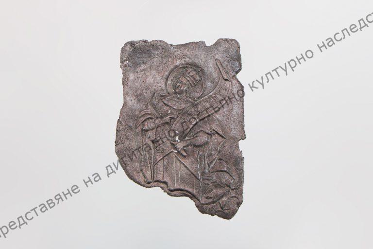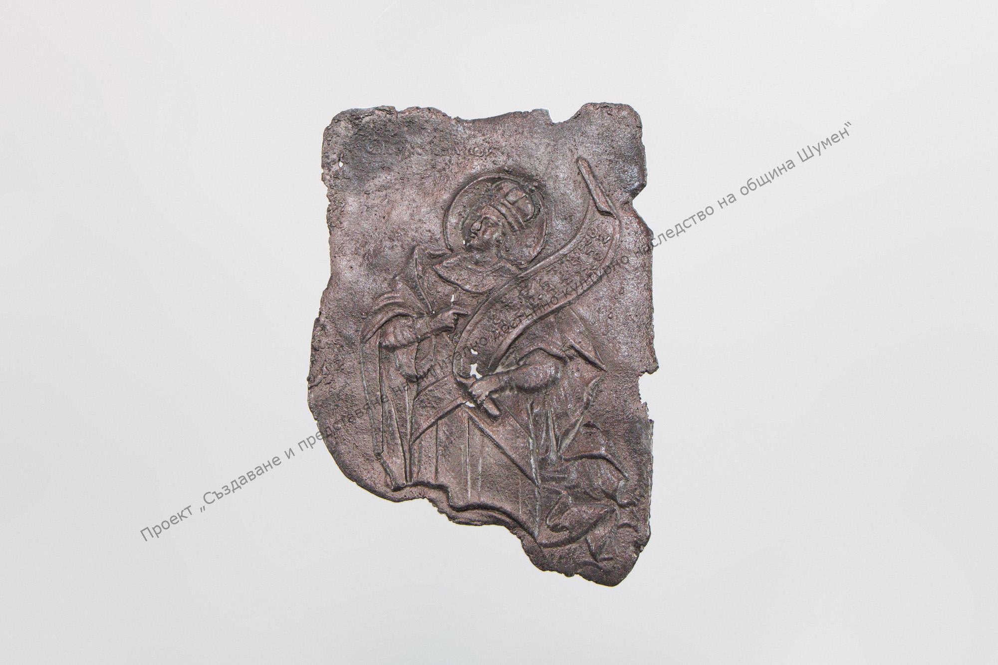 Part of goldsmith’s inventory – belonged to Panayot Kuyumdzhi – goldsmith from Shumen, For casting book casings. Made of lead, Plate in the shape of irregular rectangle. With relief decoration in ecclesiastical style
