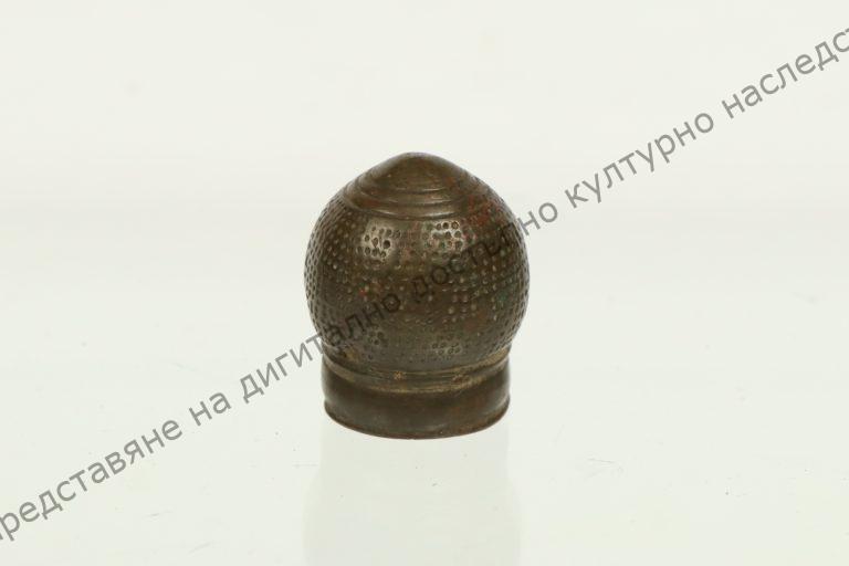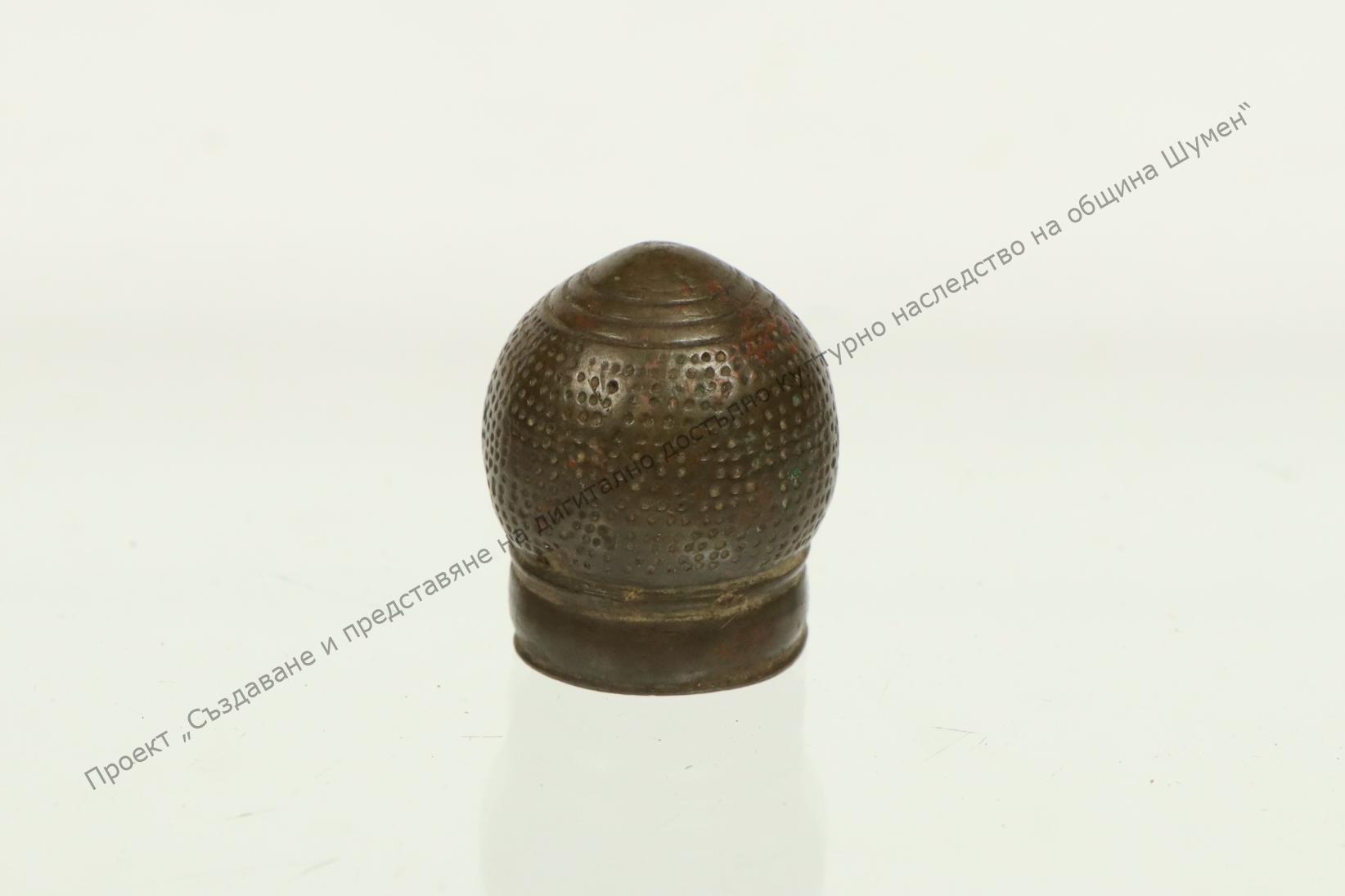 Of metal. Frieze weaver’s. Cone-shaped. Small holes on the surface