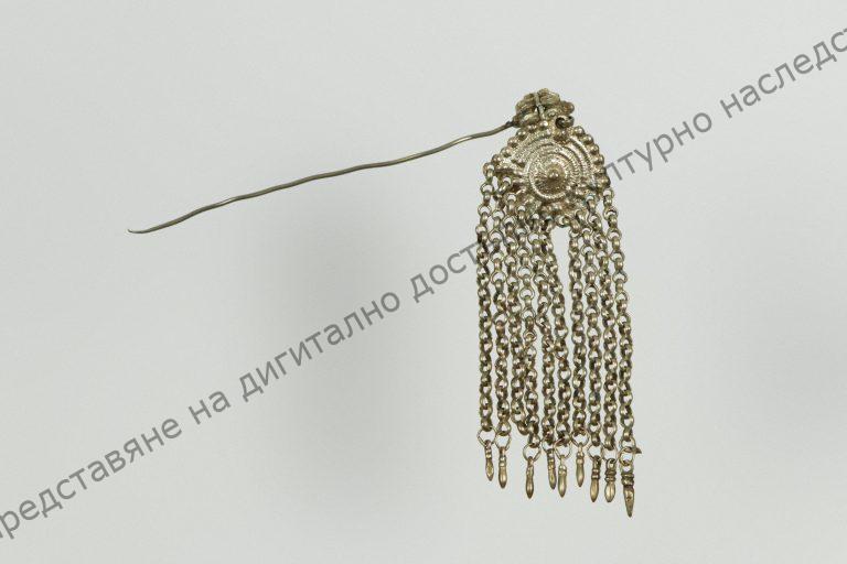 От бронз. Пъпковидна сфера, към която са прикрепени синджирчета