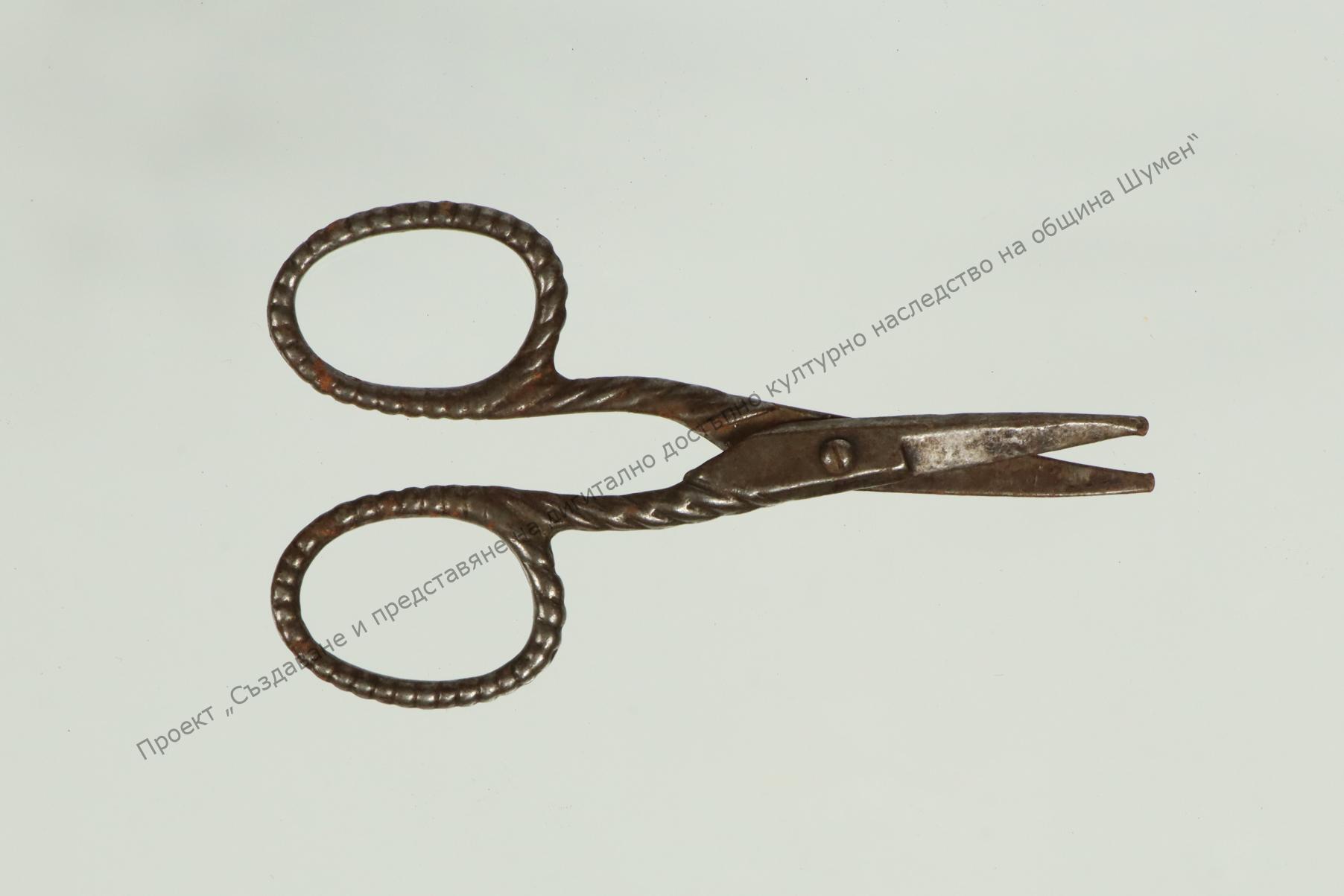 Of tarnished metal. Used in needlework by the wife of Boyan Baychev from Shumen until the middle of the 20th century
