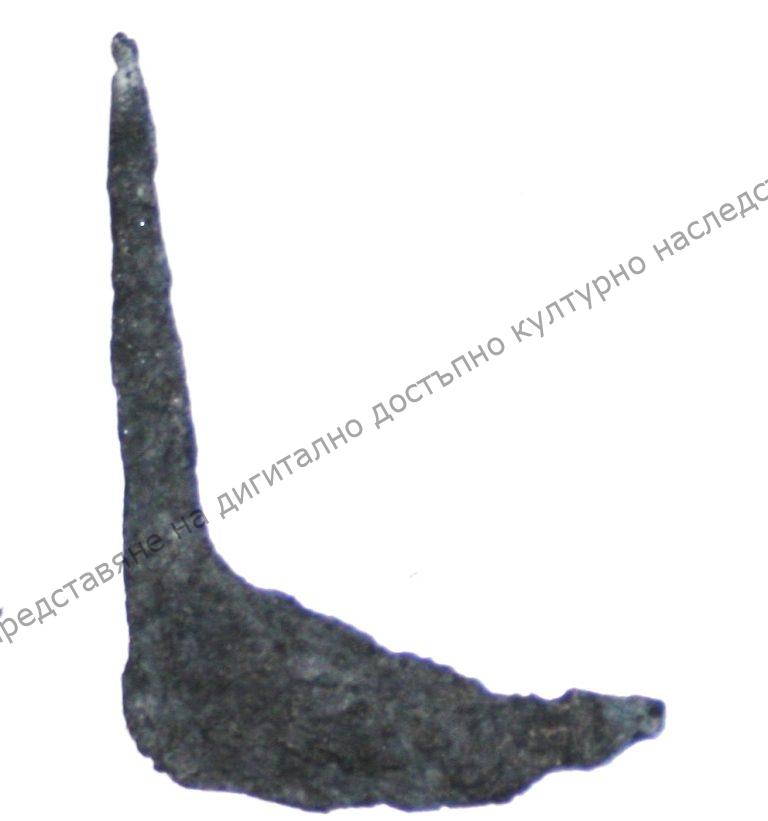 Копитно. От желязо. Работната му част е под формата на триъгълник, от който под прав ъгъл излиза дръжка заострена в горния си край и подвита като кука.
