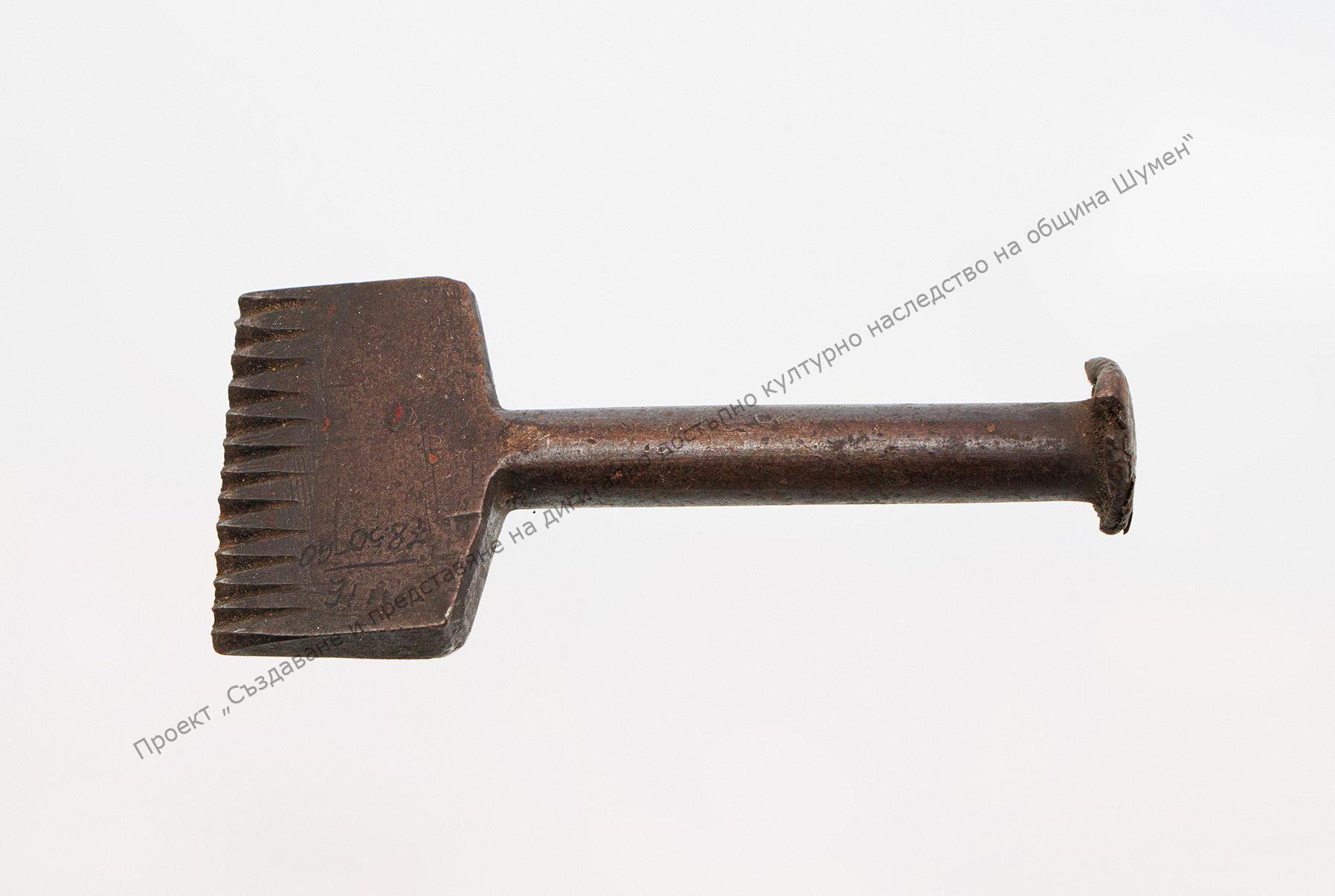 Part of saddler’s toolset. Of iron. Used when cutting leather for horse ammunition decoration