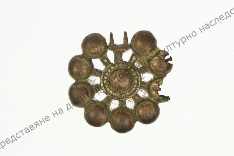 От бял метал с кръгла форма. В центъра – точковидна украса