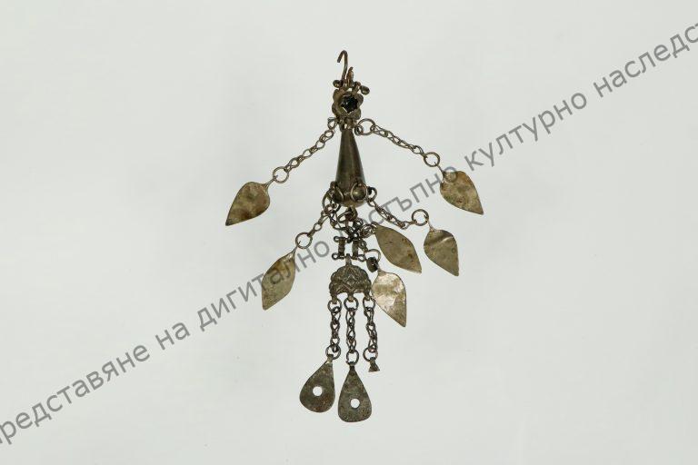 От метална сплав с оловен цвят, тип „висулки“. Вероятно от края на XIX век