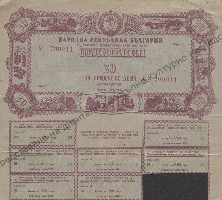 От 2% държавен конверсионен заем – 1952 г. – за 30 лева