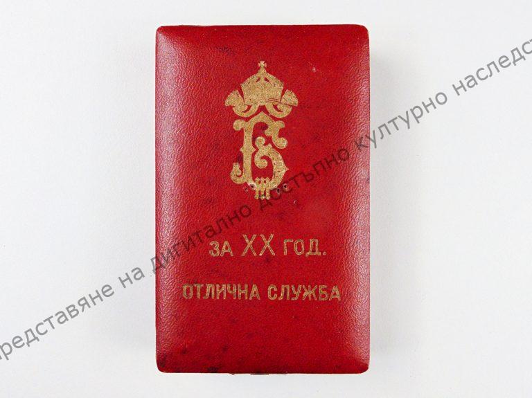 За 20 години отлична служба, с вензела на Борис III