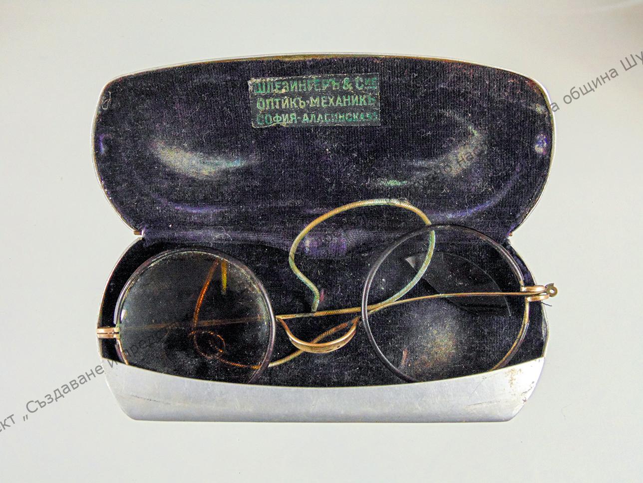 Кръгли жълти стъкла поставени в сребърна кутийка