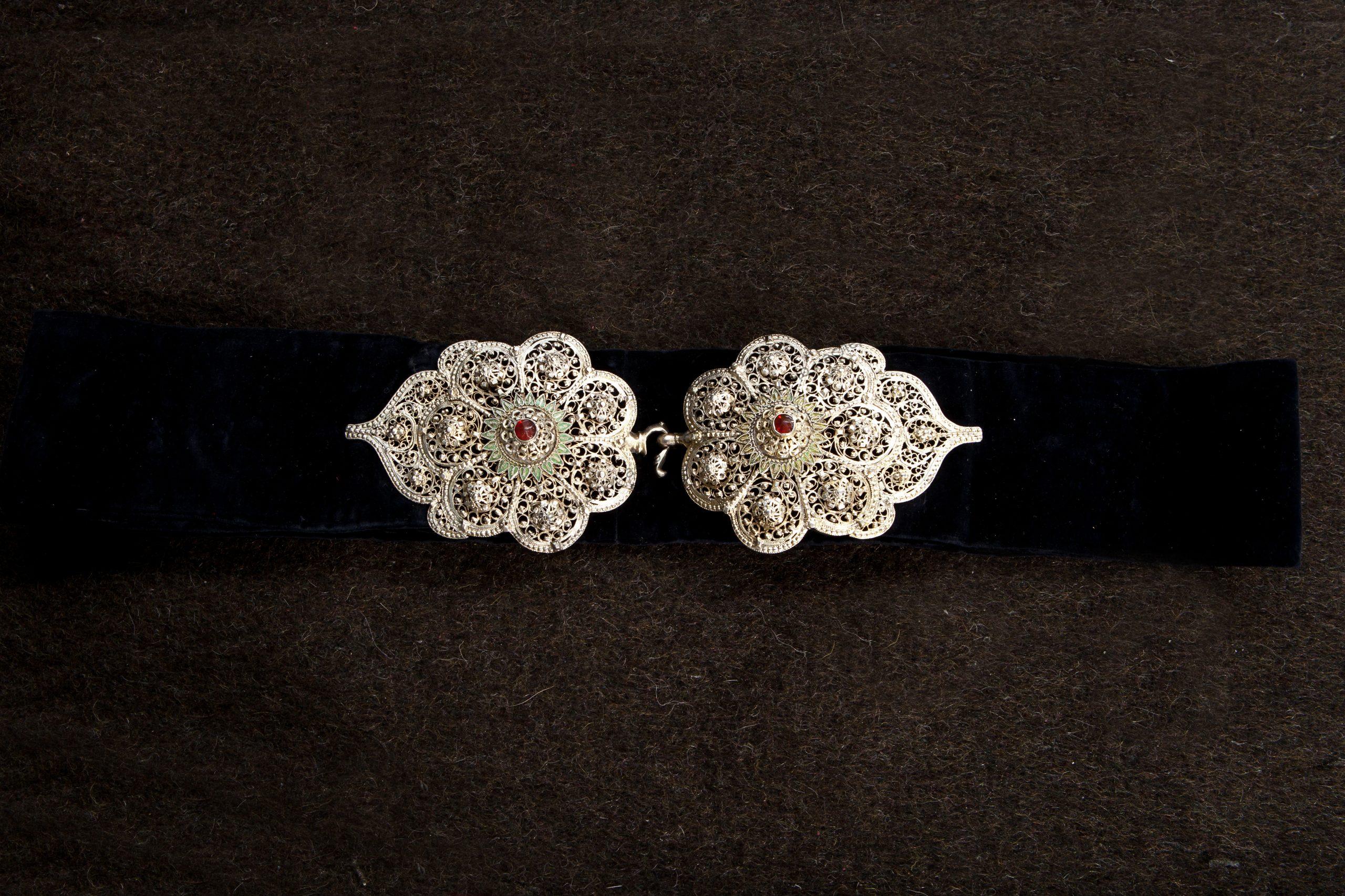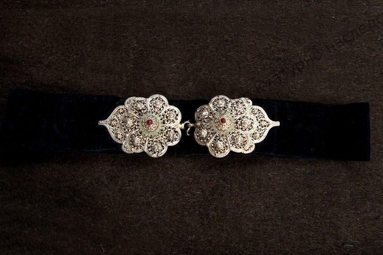 Поставени върху колан от фино черно кадифе. Изработка – филигран