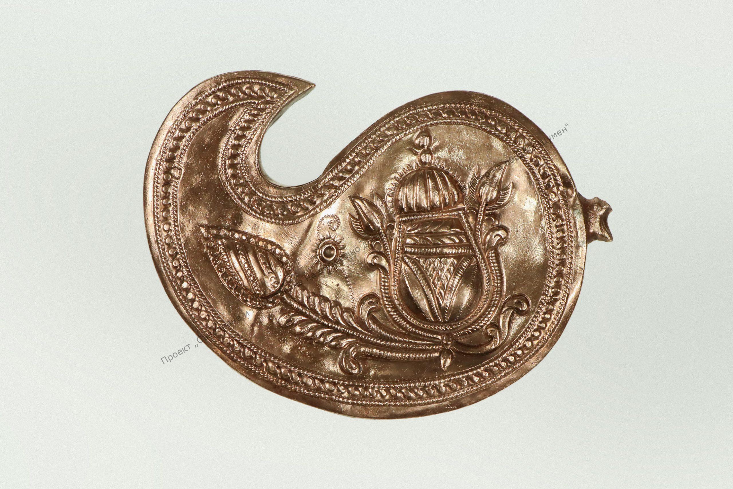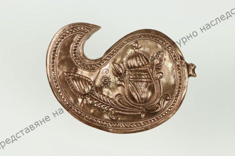 От мед. С форма на индийска палмета. Релефна украса от растителни орнаменти и джамия