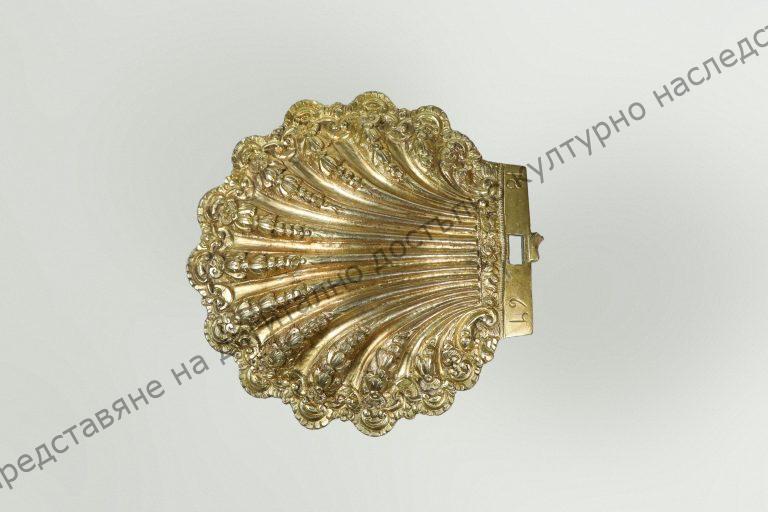 От бронз, лята, с позлата. Тип „мида“. Фестонирани краища, релефна украса