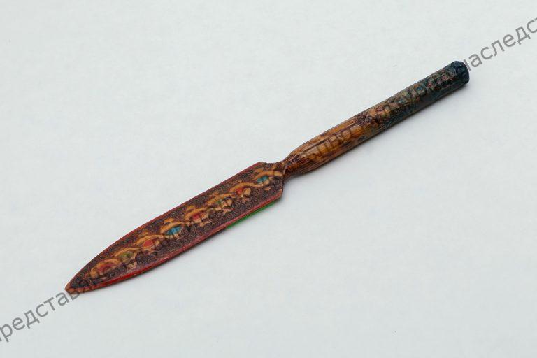 Pyrographed. One end shaped as paper cutter, the other as quill (missing tip), the 50s of the 20th century